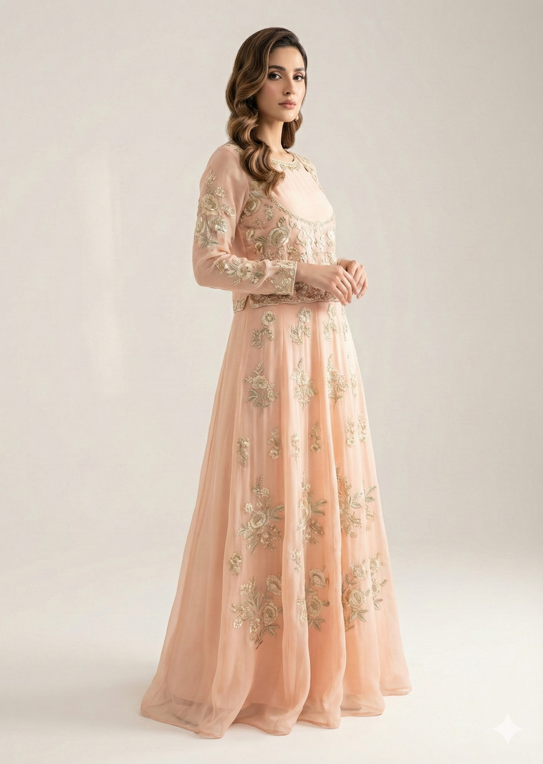This breathtaking ivory bridal lehenga is a masterpiece of traditional craftsmanship and regal opulence. The ensemble features a meticulously hand-embellished blouse paired with a voluminous lehenga, both adorned with intricate gold zardozi, tilla work, and delicate floral motifs. The fluid, flowy silhouette is designed to create a majestic presence, while the sheer embroidered dupatta with heavy borders adds a layer of ethereal grace. A perfect fusion of heritage artistry and a timeless aesthetic, this bridal outfit is the ultimate choice for a grand wedding ceremony.