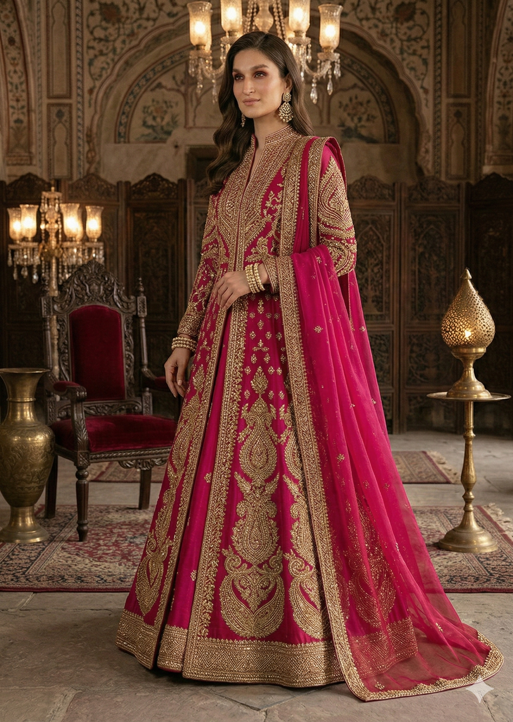 This breathtaking ivory bridal lehenga is a masterpiece of traditional craftsmanship and regal opulence. The ensemble features a meticulously hand-embellished blouse paired with a voluminous lehenga, both adorned with intricate gold zardozi, tilla work, and delicate floral motifs. The fluid, flowy silhouette is designed to create a majestic presence, while the sheer embroidered dupatta with heavy borders adds a layer of ethereal grace. A perfect fusion of heritage artistry and a timeless aesthetic, this bridal outfit is the ultimate choice for a grand wedding ceremony.